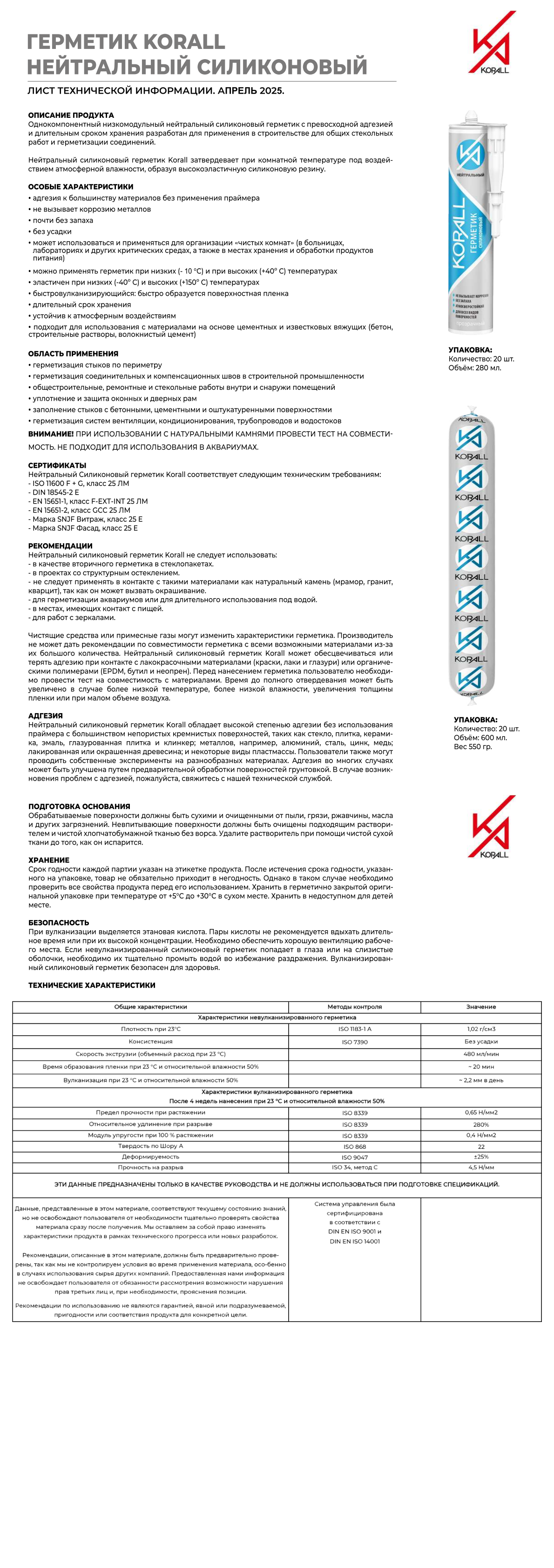 ОСОБЫЕ ХАРАКТЕРИСТИКИ • адгезия к большинству материалов без применения праймера • не вызывает коррозию металлов • почти без запаха • без усадки • эластичен при низких (-40º С) и высоких (+150º С) температурах • быстро образуется поверхностная пленка • устойчив к атмосферным воздействиям • подходит для использования с материалами на основе цементных и известковых вяжущих (бетон, строительные растворы, волокнистый цемент). • может использоваться и применяться для организации «чистых комнат» (в больницах, лабораториях и других критических средах, а также в местах хранения и обработки продуктов питания) • можно применять герметик при низких (- 10 °C) и при высоких (+40 °С) температурах